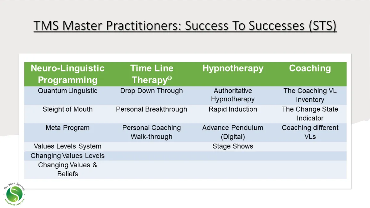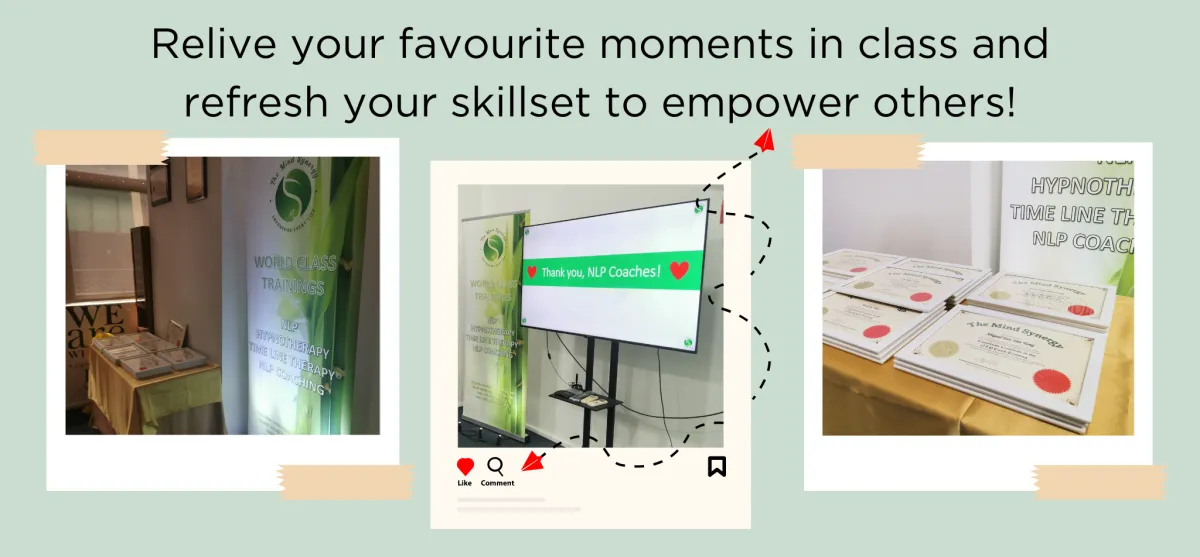 This training is an initiative by TMS for all our Practitioners and Master Practitioners to stay current with your skillsets. Do commit your time to our Refresher Night!